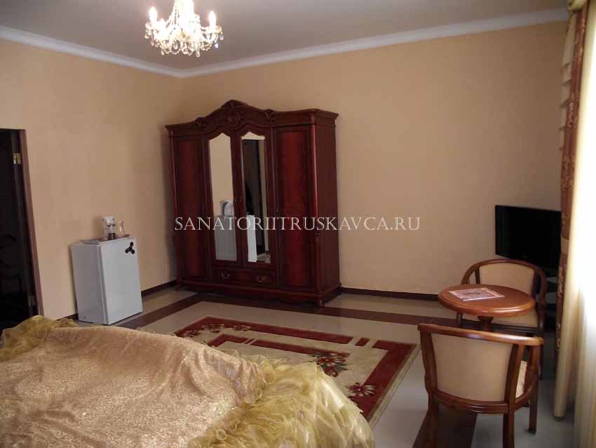 Новый корпус пансионата Grand Алексик в Трускавце – это комфортабельные 10 номеров типа «Люкс» и «Полулюкс». В пользовании отдыхающих: зал ресторана; бар; авквацентр с плавательным бассейном, 3-мя видами саун, джакузи и солярием; теннисный корт, автостоянка. Цены