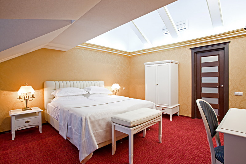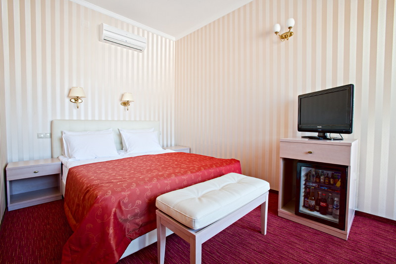 ПроживаниеСтандартный номер (SNGL) гостиницы "Киевская Русь" - всего 5 номеров. Интерьер состоит из мебельного гарнитура, односпальной кровати (размер 120 х 200 см ), коврового покрытия. Имеет выход на балкон. В стандартном одноместном номере нашего курорта Сходницы есть: спутниковое телевидение, телевизор, мини-сейф, мини-бар, электрочайник, кондиционер, телефон, возможность подключения к Интернету (Wi - Fi). Полный санузел содержит умывальник, душевую кабину, унитаз и укомплектован феном, халатом, тапочками, полотенцами и туалетной косметикой. Стандартный номер (DBL) санатория Сходницы "Киевская Русь" - всего 22 номера. Интерьер состоит из мебельного гарнитура, двухспальной кровати (размер 160 х 200 см ), коврового покрытия. Имеет выход на балкон.В стандартном двухместном номере гостиницы "Киевская Русь" есть: спутниковое телевидение, телевизор, мини-сейф, мини-бар, электрочайник, кондиционер, телефон, возможность подключения к Интернету (Wi - Fi). Полный санузел содержит умывальник, душевую кабину, унитаз и укомплектован феном, халатами, тапочками, полотенцами и туалетной косметикой. Полулюкс А улучшенный (SLS) гостиницы "Киевская Русь" - всего 9 номеров. Большой номер, который состоит из одной жилой комнаты, имеет мебельный гарнитур, двухспальную кровать (размер 160 х 200 см), диван, ковровое покрытие, некоторые - выход на балкон.В полулюксе нашего курорта Сходницы есть: спутниковое телевидение, телевизор, мини-сейф, мини-бар, электрочайник, кондиционер, телефон, возможность подключения к Интернету (Wi - Fi). Полный санузел содержит умывальник, ванну, унитаз и укомплектован феном, халатами, тапочками, полотенцами и туалетной косметикой. Полулюкс А (SLX) гостиницы "Киевская Русь" - всего 5 номеров. Большой номер, который состоит из одной жилой комнаты, имеет мебельный гарнитур, две односпальных кровати ( размер 120 х 200 см),ковровое покрытие, некоторые - выход на балкон. В полулюксе нашего курорта Сходницы есть: спутниковое телевидение, телевизор, мини-сейф, мини-бар, электрочайник, кондиционер, телефон, возможность подключения к Интернету (Wi - Fi). Полный санузел содержит умывальник, ванну, унитаз и укомплектован феном, халатами, тапочками, полотенцами и туалетной косметикой. Полулюкс Б (SLX) гостиницы "Киевская Русь" - всего 4 номера. Большой номер, который состоит из одной жилой комнаты, имеет мебельный гарнитур, двухспальную кровать (размер 160 х 200 см), ковровое покрытие, выход на балкон.В полулюксе нашего курорта Сходницы есть: спутниковое телевидение, телевизор, мини-сейф, мини-бар, электрочайник, кондиционер, телефон, возможность подключения к Интернету (Wi - Fi). Полный санузел содержит умывальник, ванну, унитаз и укомплектован феном, халатами, тапочками, полотенцами и туалетной косметикой. Люкс (LUX) гостиницы "Киевская Русь" - всего 12 номеров. Двухкомнатный номер, имеет спальню с выходом на балкон и гостиную. Интерьер состоит из мебельного гарнитура, двухспальной кровати (размер 160 х 200 см ), дивана, коврового покрытия. В люксе нашего курорта Сходницы есть: спутниковое телевидение, телевизор, мини-сейф, мини-бар, электрочайник, кондиционер, телефоны, возможность подключения к Интернету (Wi - Fi). Полный санузел содержит умывальник, ванну, унитаз, биде и укомплектован феном, халатами, тапочками, полотенцами и туалетной косметикой. Апартамент (APT) гостиницы "Киевская Русь" - всего 1 но