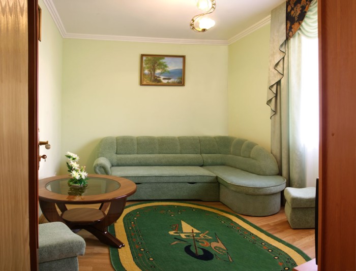 Проживание на вилле Рома (Трускавец)Вилла «Рома» имеет 3 одноместные стандартные номера, 8 номеров категории полулюкс и 3 номера класса “люкс”. Удобные комфортабельные комнаты помогут думать только о хорошем отдыхе. В каждом номере: спутниковое ТВ, холодильник, телефон, санузел (холодная и горячая вода круглосуточно). Питание на вилле Рома в ТрускавцеВкусные украинские блюда удовлетворят изощрённые вкусы, возможная доставка в номера. Завтрак - 35 грн, обед - 50 грн, ужин - 35 грн. Лечение при проживании на вилле РомаНа базе санаториев «Карпаты» и «Трускавец» или в других медицинских центрах курорта. Есть возможность посещать бассейн (25 грн), гидромассаж, тренажерный зал и сауну. Также предоставляются услуги по стирке и глажке одежды. Сауна на дровах поможет вам расслабиться и оставить незабываемые впечатления от отдыха (140 грн с 4-х человек). Вы можете воспользоваться услугами массажиста. Стоянка автомобилей. Остановившись у нас, Вы убедитесь, что сделали правильный выбор. Звоните и бронируйте