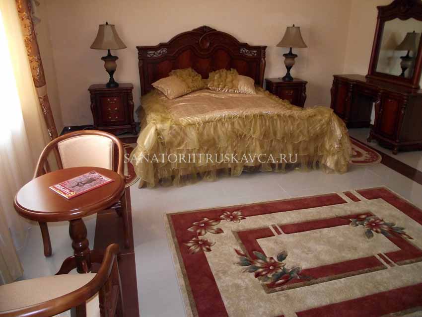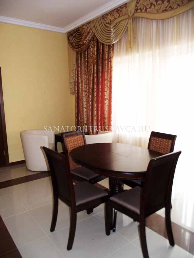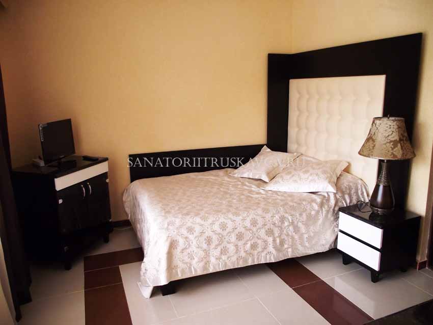 Новый корпус пансионата Grand Алексик в Трускавце – это комфортабельные 10 номеров типа «Люкс» и «Полулюкс». В пользовании отдыхающих: зал ресторана; бар; авквацентр с плавательным бассейном, 3-мя видами саун, джакузи и солярием; теннисный корт, автостоянка. Цены