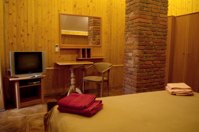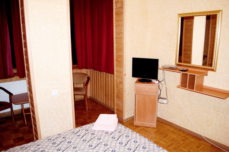 Включено в стоимость: Проживание: Дети Расчетное время: Описание номеров1-местный стандарт - площадь 14 м.кв. В номере - 1-спальная кровать (ортопедический матрас), спутниковое ТВ, холодильник, чайный сервиз, душ, умывальник, унитаз. ПитаниеВ 5-ти мин ходьбы расположена курортная столовая "Гранд-Їдальня", где "можно заказать как диетическое, так и питание "шведский стол". ЛечениеЛечение можно организовать на базе санатория Трускавец (СБУ), а также медицинского центра Мед-Палас, которые находятся недалеко от отеля. Другие услуги