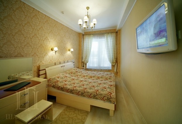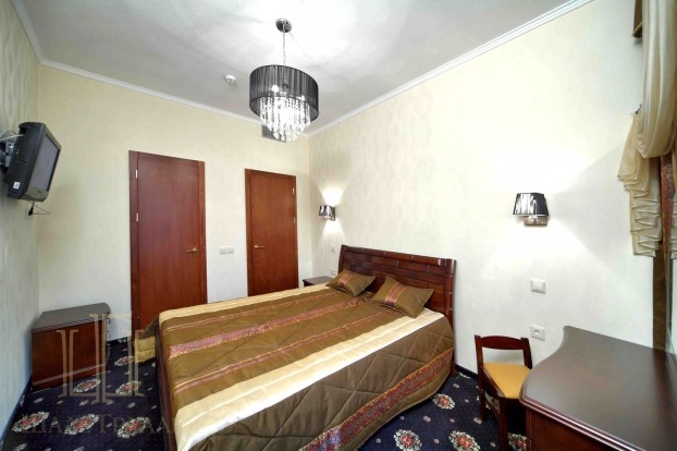 Комнаты: 1 (одна спальня). Санузлы: 1. Балкон: 1. Общая площадь: 16,7 м кв. Стиль: «контемпорари» / «модерн». Комплектация: двуспальная кровать, прикроватные тумбы, трюмо, стол, кресла, телефон, фен, сейф, телевизор, шкаф-купе, холодильник, переносная конструкция для сушки вещей, гладильная доска, утюг, DVD-плеер (в апартаменте или на центральной рецепции). Оснащение: интернет, телефонная связь (городская, междугородная, международная), кабельное телевидение, система обогрева и охлаждения воздуха. Санузел: душевая кабина и другие сантехнические принадлежности.