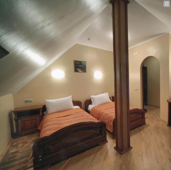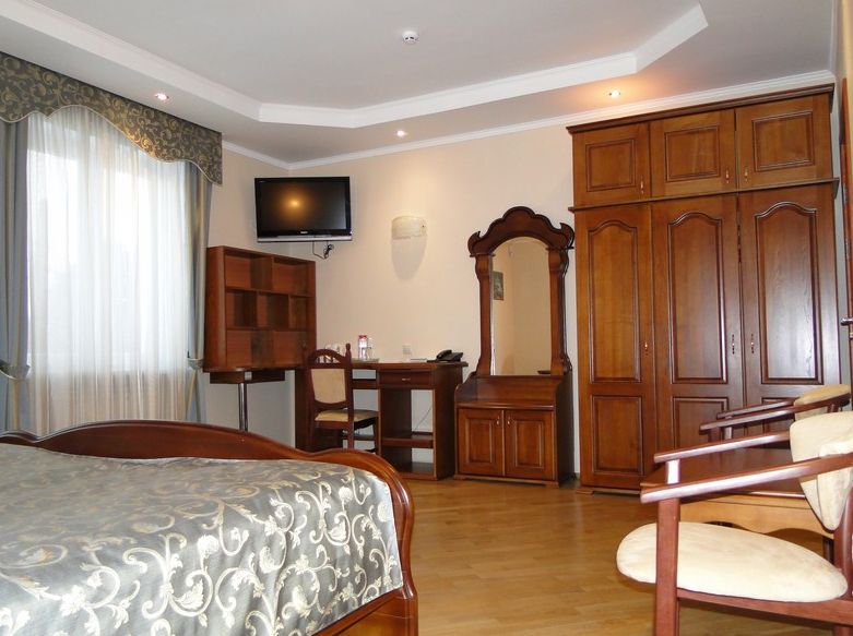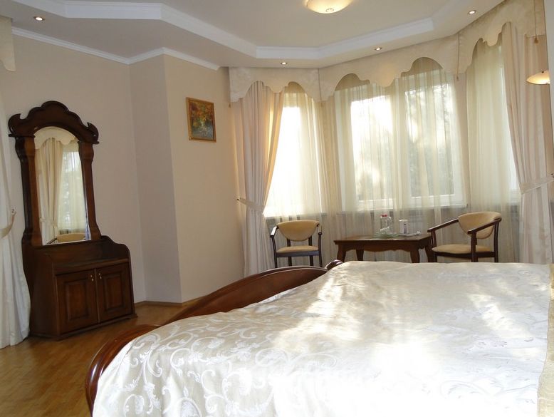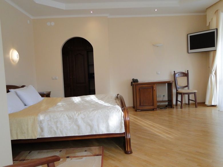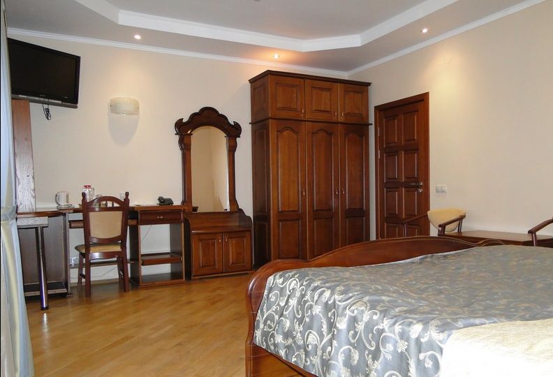 Семейный: Двухкомнатный, просторный номер с балконом, в котором может расположиться целая семья. В номере находятся: 2 двуспальные кровати или 1 двуспальная и 2 односпальные, кабельное телевидение, санузел, душ, ванна, фен. Набор постели, полотенец, халатов, косметический набор. Этот просторный номер подарит Вам незабываемый комфорт и уют. 202 Полулюкс