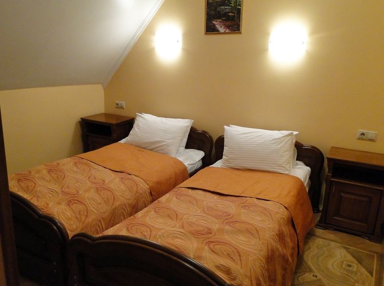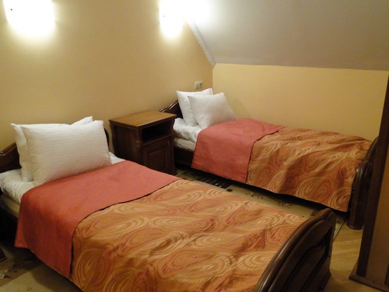 Стандарт: Однокомнатный просторный номер, двухместный, в котором может расположиться два человека. В номере находятся: две односпальные кровати, кабельное телевидение, душ или ванна, фен. Набор постели, халатов, косметический набор Кафе-БарИзысканный и стильный, элегантный, Кафе-Бар в отеле «RED STONE», ? для тех, кто ценит качество и берет от жизни только лучшее. Классическим рецептам европейской и украинской кухни наш повар придал новые яркие оттенки. Залог неповторимости вкуса всех блюд - в использовании исключительно натуральных и самых качественных продуктов. КухняОтель Red Stone предлагает своим постояльцам вкусные и диетические блюда, которые приготовлены только Бронирование Отель "RED STONE" Трускавец +38(097)480-46-29