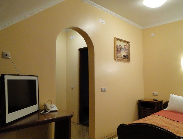 Полулюкс: Однокомнатный просторный номер с балконом, двухместный, в котором может расположиться два человека. В номере находятся: двуспальная кровать, журнальный стол, два кресла, кабельное телевидение, душ, ванна, фен. Набор постели, халатов, косметический набор. 301 Стандарт
