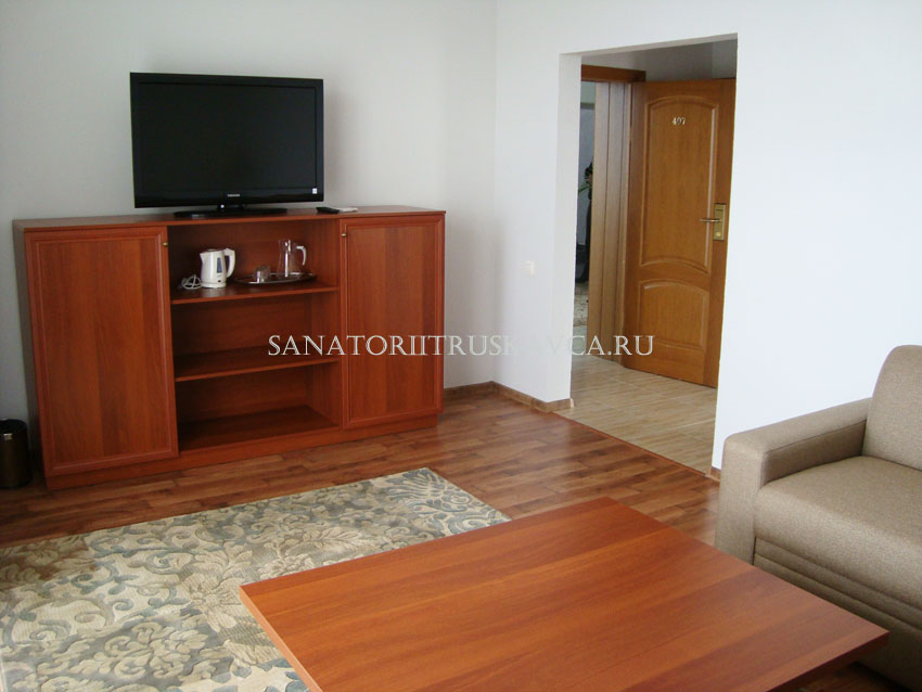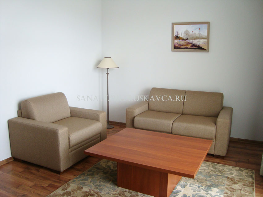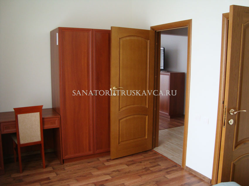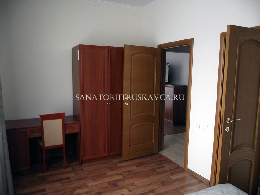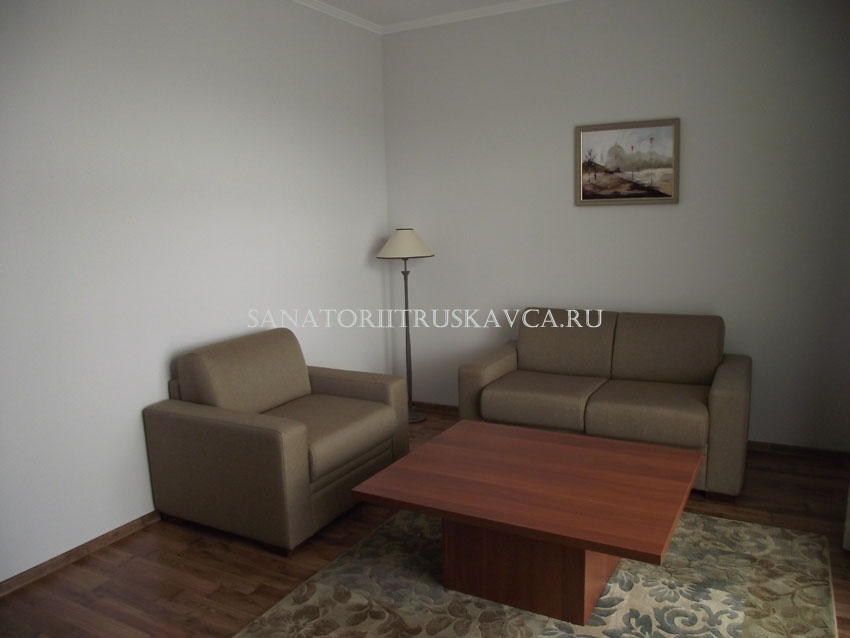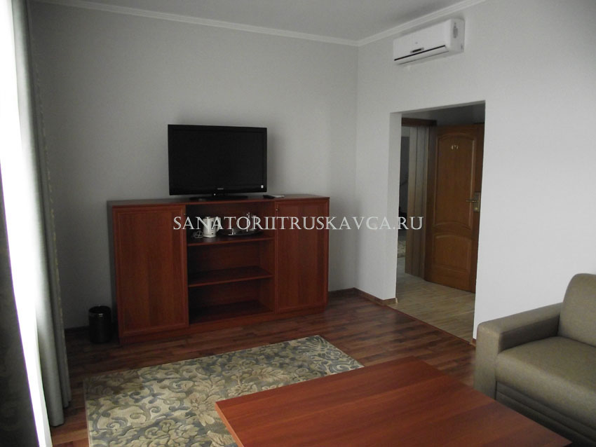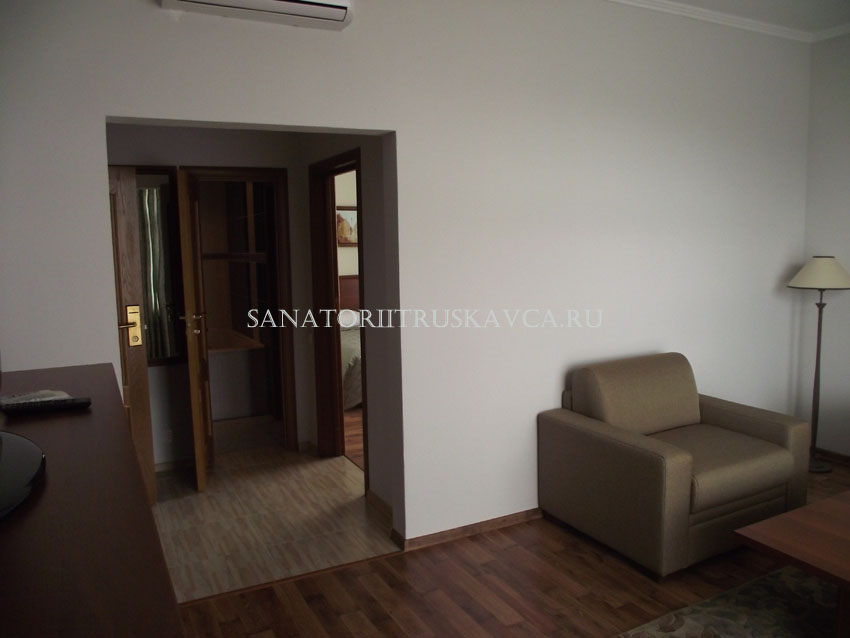 Двухкомнатный номер, состоящий из спальни и гостиной. Оборудование номера: возможностью дополнительного места, сейф, платяной шкаф, мини-бар, рабочий стол, кондиционер, отопления с индивидуальной системой регулирования, телефон,