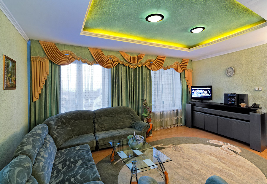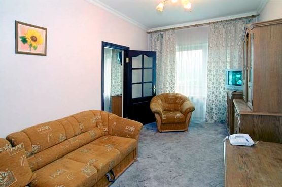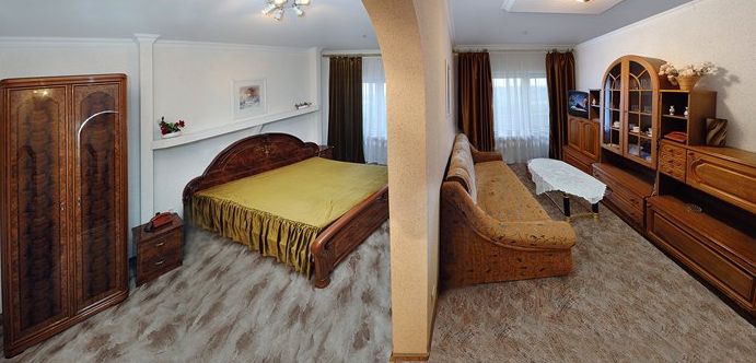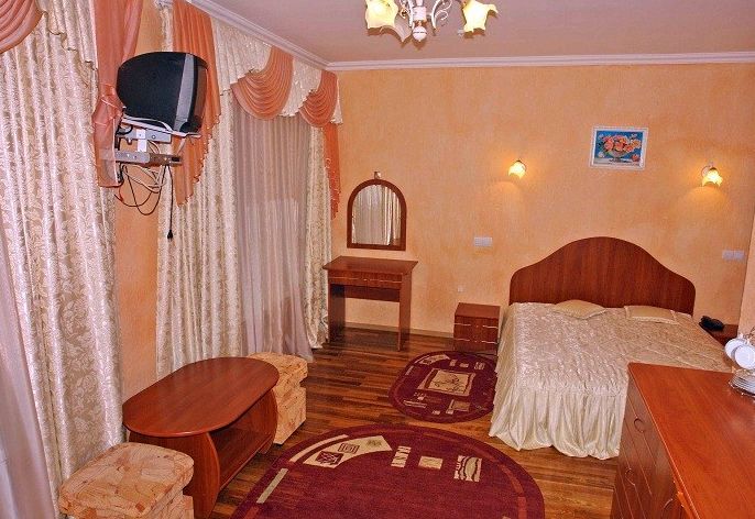 Люкс (34м2) двухкомнатный номер. Спальня с двуспальной кроватью, гостиная с набором мягкой мебели; Ванная комната — ванна; Балкон. *При поселении в регистратуре, обязательно вносится залог согласно категории номера, 1000,00грн за номер!