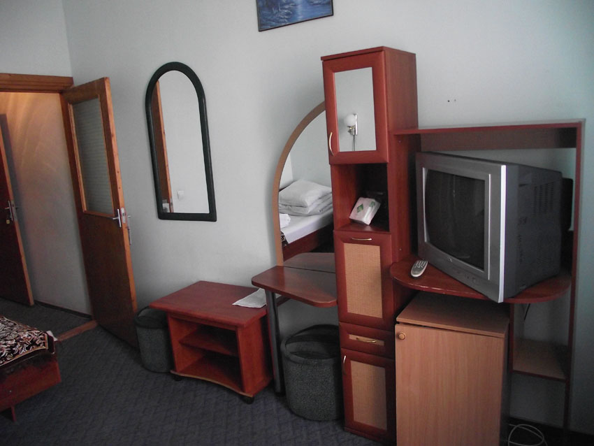 проживанияНомера:Включено в стоимость: Дети • Дети до 6-и лет при размещении в номере минимум с 1 взрослым без предоставления дополнительного места – проживание и питание бесплатно. «Эконом» (17м2) :2 односпальные кровати,телевизор; Ванная комната — душ без поддона; Балкон. Одноместный «Стандарт»(17м2): односпальная кровать, телевизор, холодильник, электрочайник; Ванная комната — душ; Балкон. Одноместный «Улучшенный»(17м2): полуторная кровать, телевизор, холодильник, электрочайник, ремонт; Ванная комната — душ; Балкон. Двухместный стандарт (17м2): 2 односпальные кровати, телевизор, холодильник, электрочайник; Ванная комната — душ; Балкон. Двухместный улучшенный (17м2): 2 односпальные кровати, телевизор, холодильник, электрочайник, ремонт; Ванная комната — душ; Балкон. Студио (20м2): двуспальная кровать, диван-кровать, телевизор, холодильник, электрочайник, ремонт; Ванная комната — душ; Балкон. Двухкомнатный улучшенный (29м2): двуспальная кровать, диван-кровать, телевизор, холодильник, электрочайник, утюг, гладильная доска, ремонт; Ванная комната — ванна; Балкон.