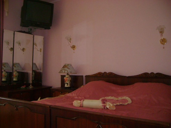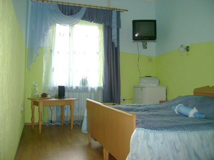 ПроживаниеЛюкс (двухкомнатный двухместный номер, общая площадь 40 м.кв.) - двуспальная кровать, диван, спутниковое ТВ, холодильник, телефон, электрочайник, утюг, столовый сервис, душевая кабина, умывальник, унитаз, фен, количество полотенец – 3 на 1 чел., балкон. Полулюкс (однокомнатный двухместный номер, общая площадь 30 м.кв.) - двуспальная кровать, диван, спутниковое ТВ, холодильник, телефон, электрочайник, утюг, столовый сервис, душевая кабина, умывальник, унитаз, фен, количество полотенец – 3 на 1 чел. Стандарт (однокомнатный двухместный номер, общая площадь 25 м.кв.) - 2 односпальные кровати, спутниковое ТВ, холодильник, телефон, электрочайник, утюг, столовый сервис, душевая кабина, умывальник, унитаз, фен, количество полотенец – 3 на 1 чел., балкон. Одноместный (однокомнатный одноместный номер, общая площадь 20 м.кв.) - полутороспальная кровать, спутниковое ТВ, холодильник, телефон, электрочайник, утюг, столовый сервис, душевая кабина, умывальник, унитаз, фен, количество полотенец – 3 на 1 чел. Входят в стоимость проживания