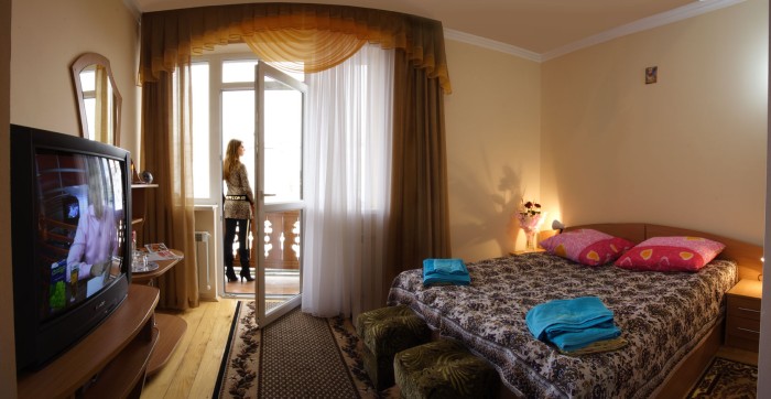 Проживание на вилле Рома (Трускавец)Вилла «Рома» имеет 3 одноместные стандартные номера, 8 номеров категории полулюкс и 3 номера класса “люкс”. Удобные комфортабельные комнаты помогут думать только о хорошем отдыхе. В каждом номере: спутниковое ТВ, холодильник, телефон, санузел (холодная и горячая вода круглосуточно). Питание на вилле Рома в ТрускавцеВкусные украинские блюда удовлетворят изощрённые вкусы, возможная доставка в номера. Завтрак - 35 грн, обед - 50 грн, ужин - 35 грн. Лечение при проживании на вилле РомаНа базе санаториев «Карпаты» и «Трускавец» или в других медицинских центрах курорта. Есть возможность посещать бассейн (25 грн), гидромассаж, тренажерный зал и сауну. Также предоставляются услуги по стирке и глажке одежды. Сауна на дровах поможет вам расслабиться и оставить незабываемые впечатления от отдыха (140 грн с 4-х человек). Вы можете воспользоваться услугами массажиста. Стоянка автомобилей. Остановившись у нас, Вы убедитесь, что сделали правильный выбор. Звоните и бронируйте