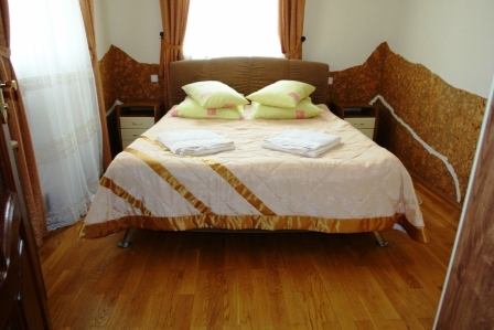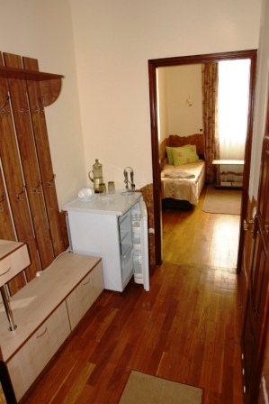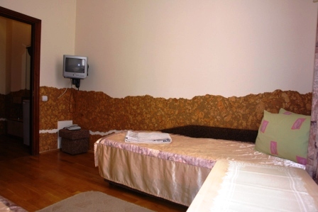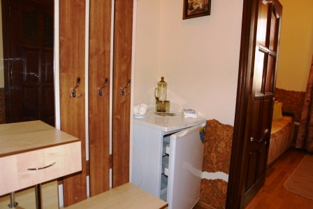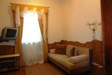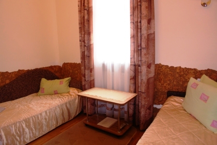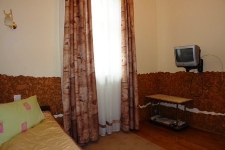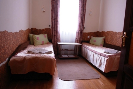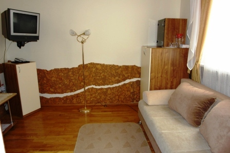 Проживание на дополнительном месте - 70 грн/сутки Для детей 6-14 лет скидка 30% на проживание на основном месте В каждом номере беcплатно WiFi Бесплатный трансфер с автовокзала и ж/д вокзала Трускавца Номера «ПРЕМЬЕР» - это двухместные, двухкомнатные номера общей площадью до 30 кв.м. Состоит номер из спальни (2 прикроватные тумбочки, двуспальная кровать, шкаф платяной, туалетный столик), гостинной (диван раскладной, сервант с посудой, стол журнальный, телефон, телевизор, холодильник) и совмещенного санузла (душ-кабина, умывальник, туалет). Номера «ЭКСКЛЮЗИВ» - 1-2-х местные, однокомнатные номера общей площадью до 17 кв.м. В номере есть телевизор, холодильник, 1 или 2 раздельные кровати, телефон, платяной шкаф, журнальный столик, стулья, совмещенный санузел (душ-кабина, умывальник, туалет). Все номера выполнены в нежных пастельных тонах, паркетный пол, стены номеров декорированы пробковым деревом. Интерьер виллы Виктория Трускавец